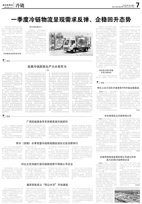 ■ 一季度冷链物流呈现需求反弹、企稳回升态势
