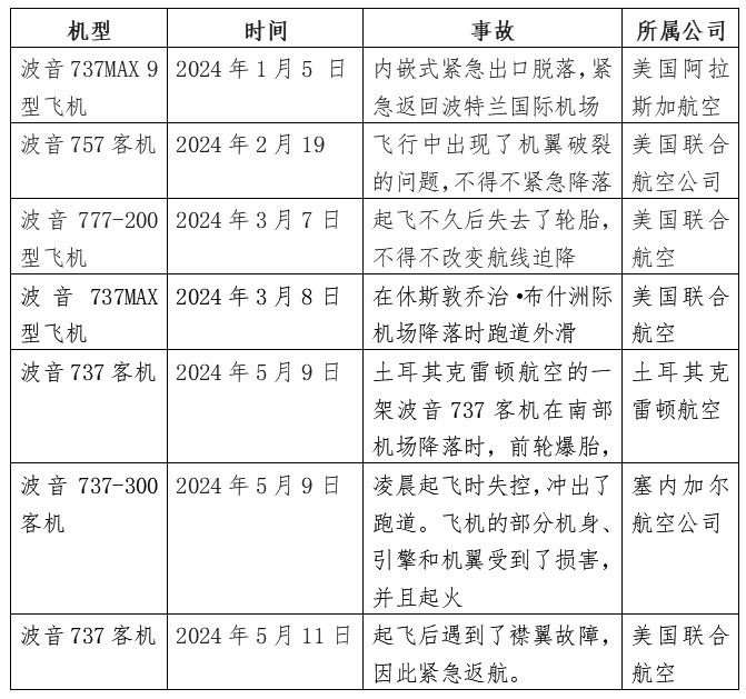 2024年1月5日,美国阿拉斯加航空的一架波音737MAX 9型飞机由于内嵌式紧急出口脱落,不得不紧急返回波特兰国际机场。
