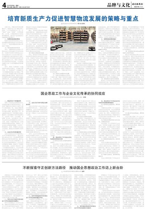 □武汉纺织大学管理学院 周兴建潘帆 在数字化、智能化的科技浪潮推动下,物流行业正在不断变革与创新,大...