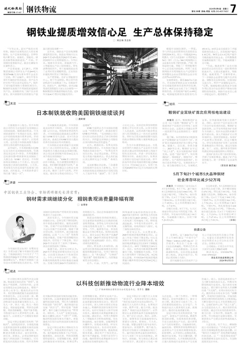 ■ 钢铁业提质增效信心足 生产总体保持稳定