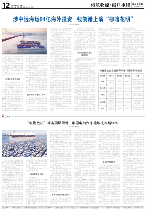 ■ “红海危机”冲击国际海运 中国电动汽车输欧成本增20%