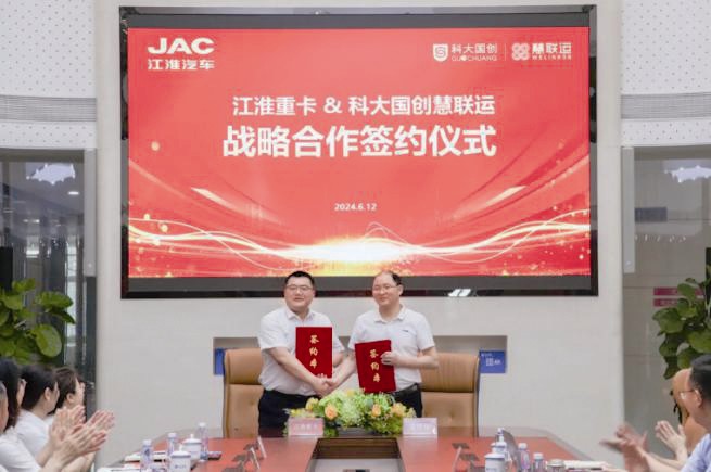 本报讯6月12日,为深入响应国家交通部门推动高速公路差异化收费政策,优化物流行业运输效率,江淮重卡与科大国创慧联运达成战略合作,共同推出“江淮卡嘉ETC”项目。