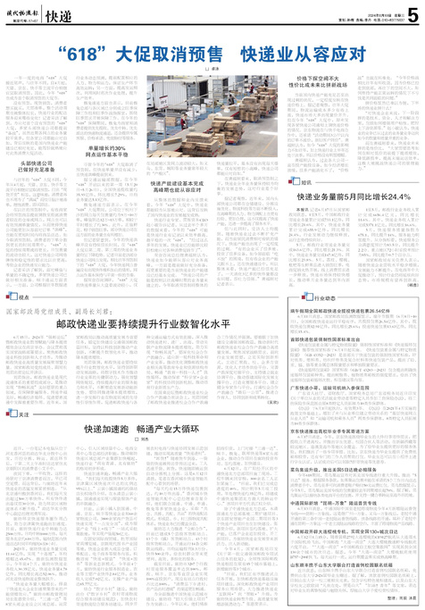本报讯记者6月17日从国家邮政局获悉,1至5月,中国邮政行业寄递业务量累计完成733.1亿件,同比增长21.6%。...
