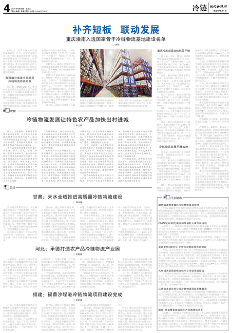 ■ 甘肃:天水全域推进高质量冷链物流建设