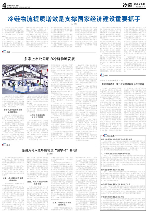 □王镜茹 国家发展改革委近日印发通知,确定全国20个骨干冷链物流基地纳入2024年国家建设名单,徐州国家...