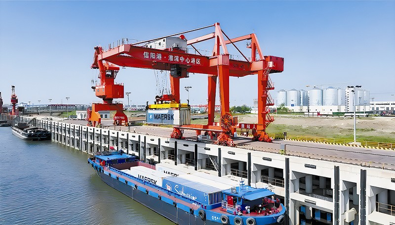 据了解,信阳港·淮滨中心港区坐拥淮河主航道,位于河南省信阳市淮滨县境内,是淮河生态经济带上公铁水多式联运的门户枢纽港,被誉为“千里淮河第一港”,整体布局为“前港、中仓、后园”,占地面积约1500亩。