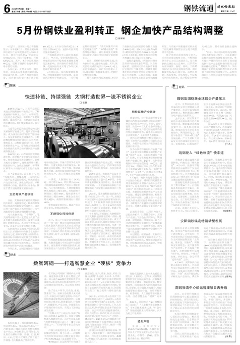 ■ 5月份钢铁业盈利转正 钢企加快产品结构调整