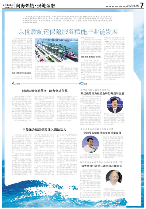 浙江将加快集聚港航金融、保险等高端服务要素,强化金融赋能,壮大产业能级,优化港航产业链、生态链和价值...