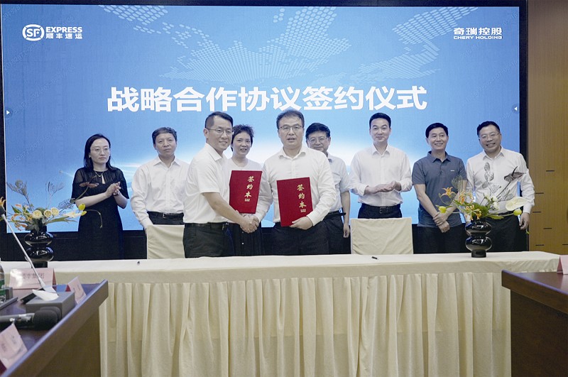 本报讯 7月5日,顺丰泰森控股(集团)有限公司(以下简称“顺丰集团”)与奇瑞控股集团有限公司(以下简称“奇瑞控股”)在安徽芜湖隆重签署战略合作协议。根据协议内容,双方将基于各自核心优势深化战略合作,在汽车物流、城市绿色配送、新能源和数字科技等领域深度合作,实现互利共赢。