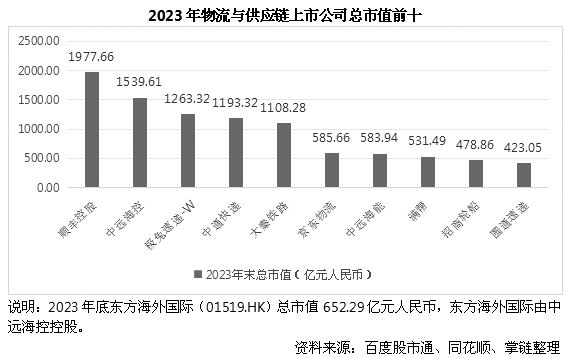 顺丰控股总市值领跑全行业:顺丰控股连年领跑我国物流与供应链上市公司总市值,2023年12月底总市值1977.66亿元,但较2022年末仍下降30.06%。全行业总市值排名前十的企业总市值9791.57亿元,占全行业57.26%,其中,电商物流占5席、航运占3席、数字货运占1席、铁路运输占1席。