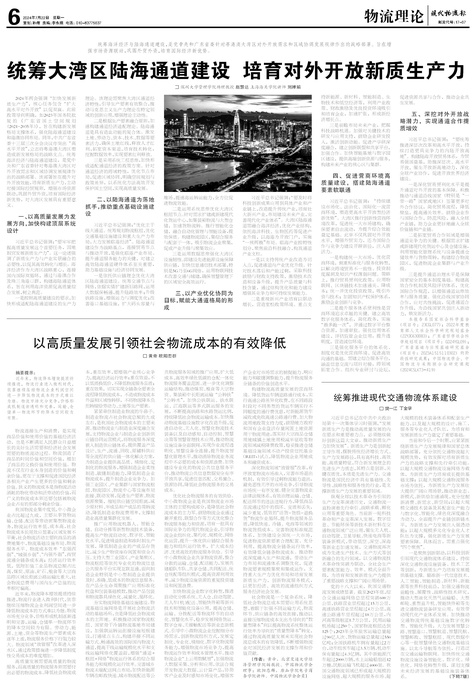 ■ 统筹大湾区陆海通道建设 培育对外开放新质生产力