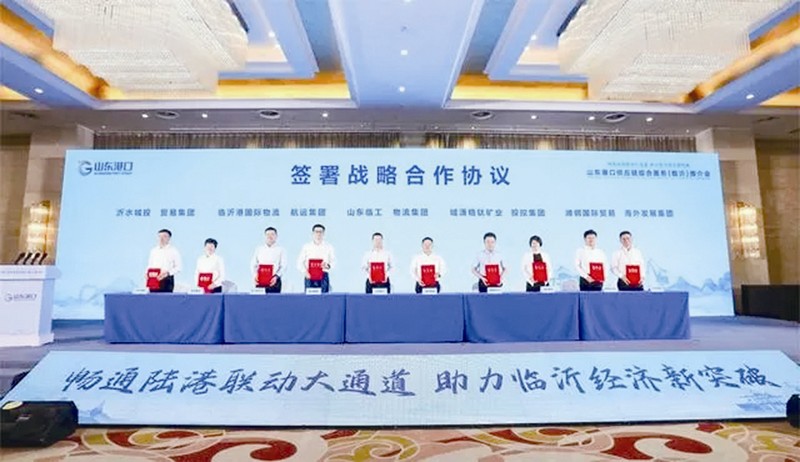 会上,山东港口青岛港、日照港、烟台港、渤海湾港与嘉吉生物、永锋临港、恒昌煤业、山东倍丰分别签署战略合作协议。山东港口物流集团、投控集团、航运集团、海外发展集团、贸易集团分别与山东临工、域潇锆钛矿业、临沂港国际物流、潍钢国际贸易、沂水城投签署战略合作协议。