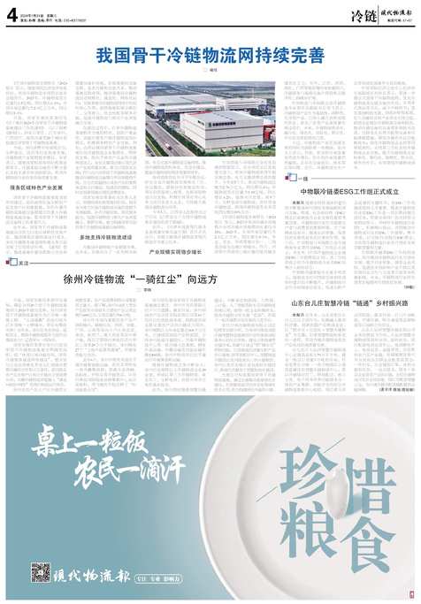 □ 李刚 日前,国家发展改革委印发通知,确定全国20个骨干冷链物流基地纳入2024年建设名单,徐州国家骨干...