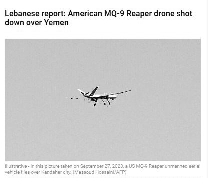 据中国新闻网,当地时间8月3日,《以色列时报》援引黎巴嫩媒体报道,一架美国MQ-9“死神”无人机不久前在也门上空被击落。