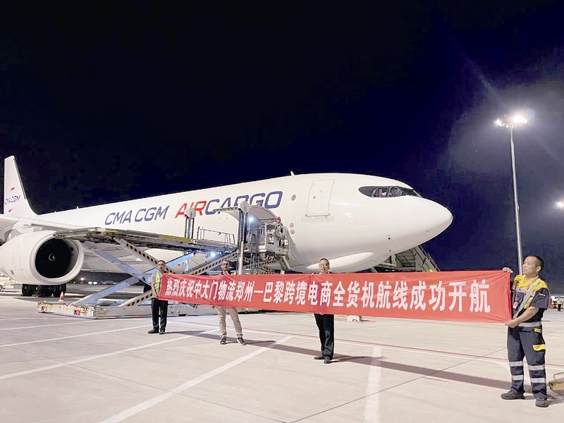 本报讯8月5日,凌晨2时58分,法国达飞货运航空的一架A332F全货机在河南郑州新郑国际机场满载启航,标志着郑州至巴黎的跨境电商全货机新航线正式开通。