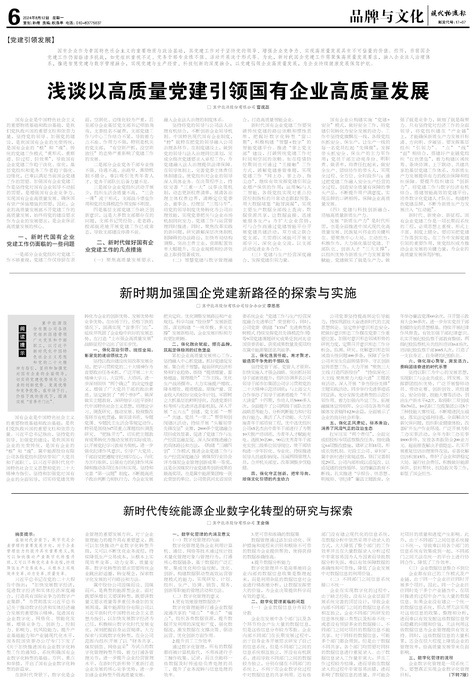 ■ 浅谈以高质量党建引领国有企业高质量发展