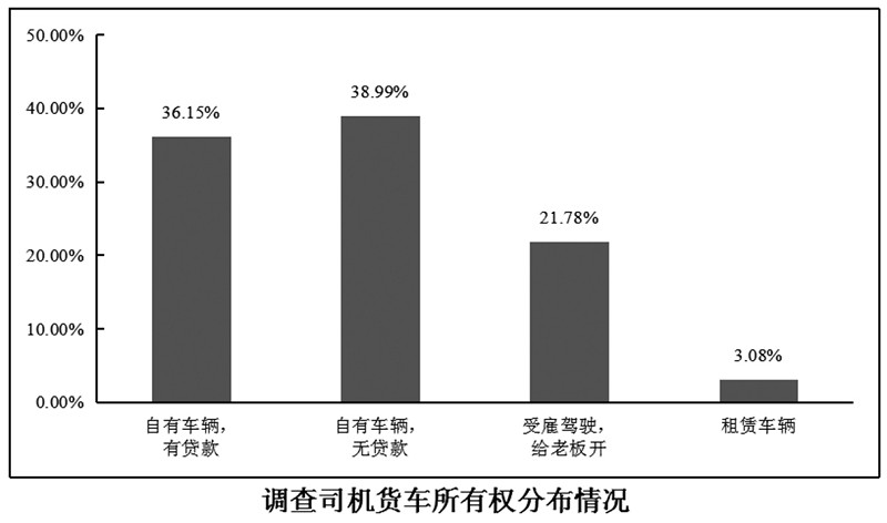 在个体司机中,挂靠经营仍然较为普遍,54.43%的个体司机属于挂靠经营。据调查司机反映,多数挂靠车辆年均管理服务费在2000~3000元。