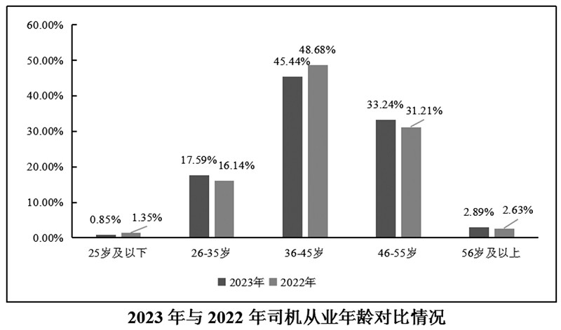 其中,35岁以下货车司机占比不到两成,年轻司机进入市场积极性不足。56岁以上货车司机占比较上年小幅上涨,越来越多司机“大”哥即将步入退休年龄。