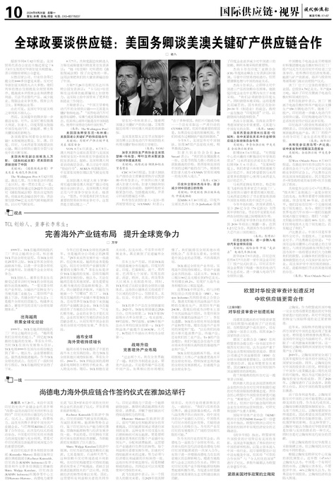 ■ 全球政要谈供应链:美国务卿谈美澳关键矿产供应链合作