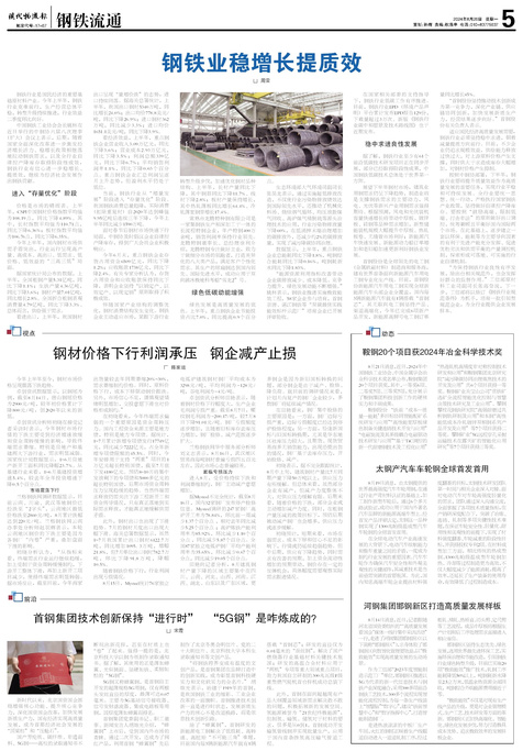 □ 周雷 钢铁行业是国民经济的重要基础原材料产业。今年上半年,钢铁行业克难前行,生产经营总体平稳,转...