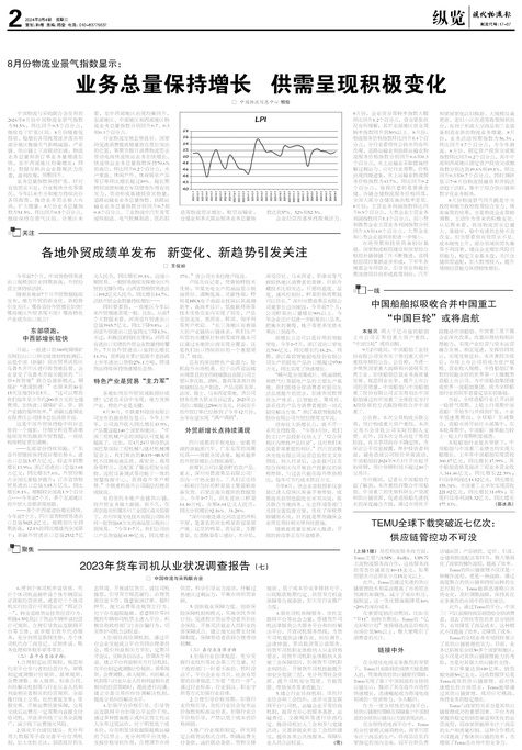 □ 中国物流信息中心胡焓 中国物流与采购联合会发布的2024年8月份中国物流业景气指数为51.5%,环比回升0....