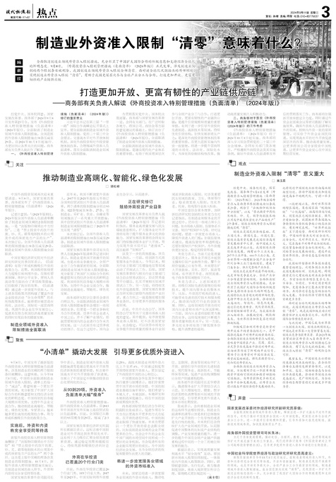 ■ 制造业外资准入限制“清零”意味着什么?