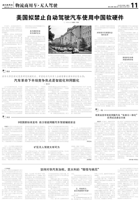 ■ 美国拟禁止自动驾驶汽车使用中国软硬件