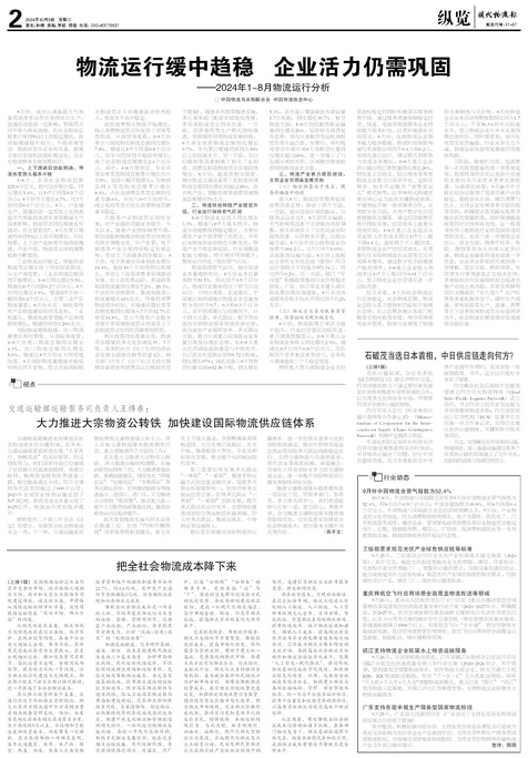 ■ 物流运行缓中趋稳 企业活力仍需巩固