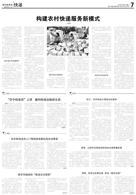 □吉蕾蕾 农村寄递物流是农产品进城、消费品下乡的重要渠道之一。国家邮政局数据显示,近年来邮政快递业...