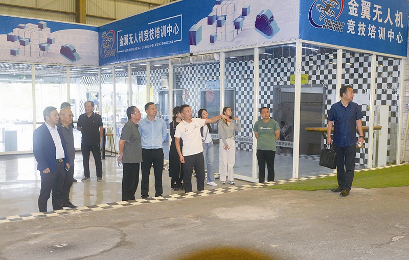 无人机表演结束后,大家参观了“金翼无人机竞技培训中心”的场馆。干净整洁的环境,各种摆放的无人机,加上工作人员专业的讲解,让参观者频频点头。