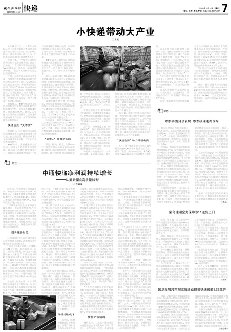□吉蕾蕾 前不久,中通快递公布2024年第二季度未经审计的财务业绩。财报显示,二季度中通快递包裹量达84....