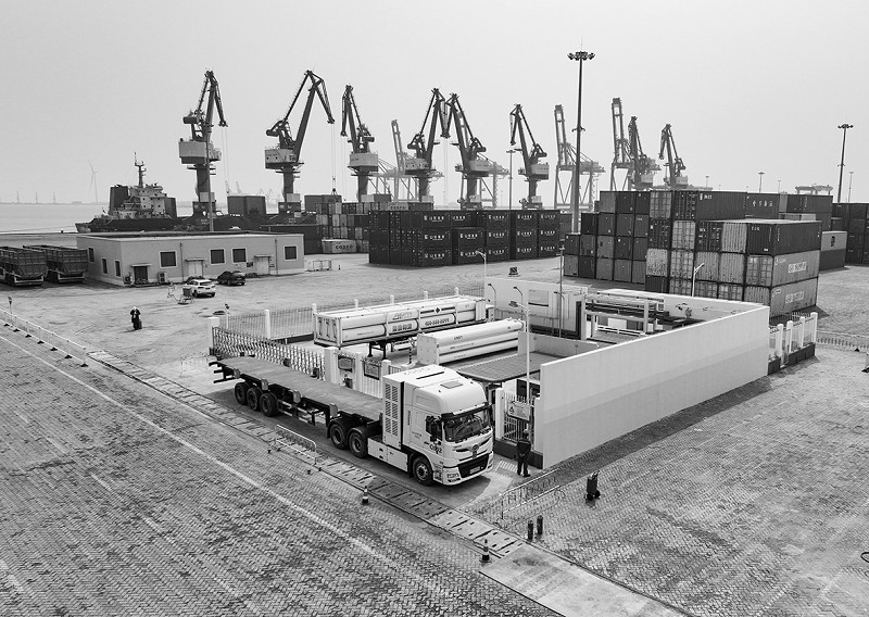 ——围绕港口与能源融合发展思路,积极推进可再生能源在港口应用的种类和场景不断丰富。风电项目之外,潍坊港持续推动风光氢多能互补体系建设,有序推进光伏发电系统在物流仓储库房、堆料仓库等区域的建设,建成投用3.3MWp光伏发电站,年发电量可达361.32万kWh;作为科技部重大科技示范工程“氢进万家”项目子课题之一,潍坊港加氢站设计日加氢能力500kg,配置双卸氢柱、双加氢枪、9m3储氢瓶组和1座综合站房,日常可储备300kg压缩氢气,可满足港区每天4辆氢燃料电池重卡的用氢需求,着力推动“绿氢制输储加用全产业链”项目应用示范。