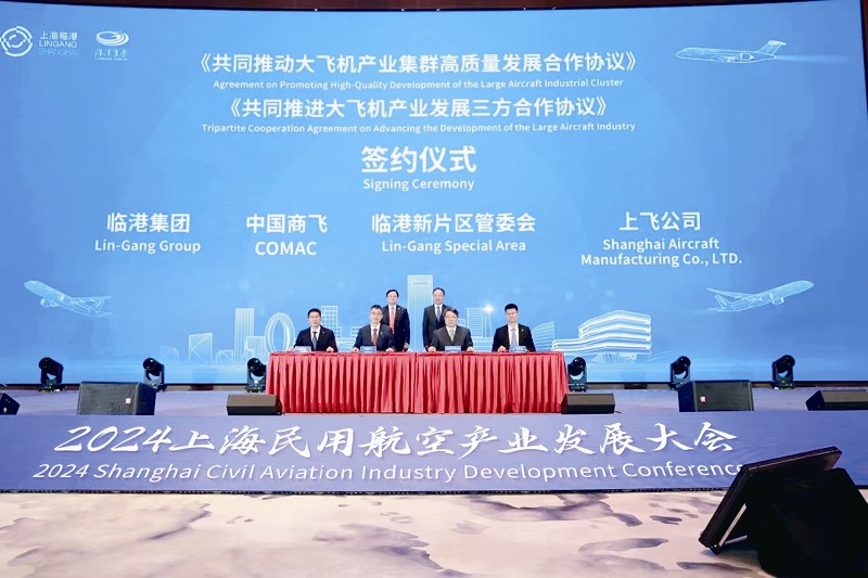 活动现场,临港新片区管委会分别与中国商用飞机有限责任公司、上海飞机制造有限公司、上海临港新片区航空产业发展有限公司四方签署《共同推进大飞机产业发展三方合作协议》 《共同推动大飞机产业集群高质量发展合作协议》。
