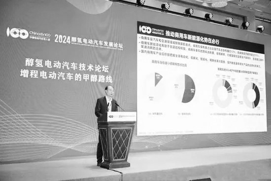 中国汽车工业协会公布的数据显示,今年1~8月,新能源汽车国内销量621.9万辆,占汽车国内销量的41.5%。其中,新能源商用车国内销量30.3万辆,同比增长38.4%,占商用车国内销量的15.1%。“尽管新能源商用车的增长速度很快,销量占比也在稳步提升,但商用车新能源化的道路并非一帆风顺。”在近日举办的2024醇氢电动汽车发展论坛上,中国电动汽车百人会副秘书长师建华表示,相较于乘用车而言,商用车的使用场景更复杂、经济性要求更高,因此它对新能源转型的技术路线提出了更多元化的要求。“商用车的新能源化对中国能源结构整体转型有重大推进作用。现阶段来看,商用车新能源化发展落后于乘用车,但新能源商用车的销量在稳步增长,未来发展空间很大。”师建华分析说,目前商用车新能源化转型面临着诸多难点和挑战,应积极把握电动化、智能化、网联化、低碳化的趋势,利用好醇氢电动等技术,以此加速转型步伐,提升中国新能源商用车在全球的核心竞争力。