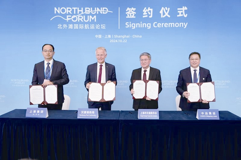 本报讯10月22日,在2024北外滩国际航运论坛期间,上海港与汉堡港联合宣布共建“上海港—汉堡港绿色航运走廊”,标志着两港在推动航运业绿色低碳转型方面迈出了重要的一步,并将为全球航运业的可持续发展注入新的活力。