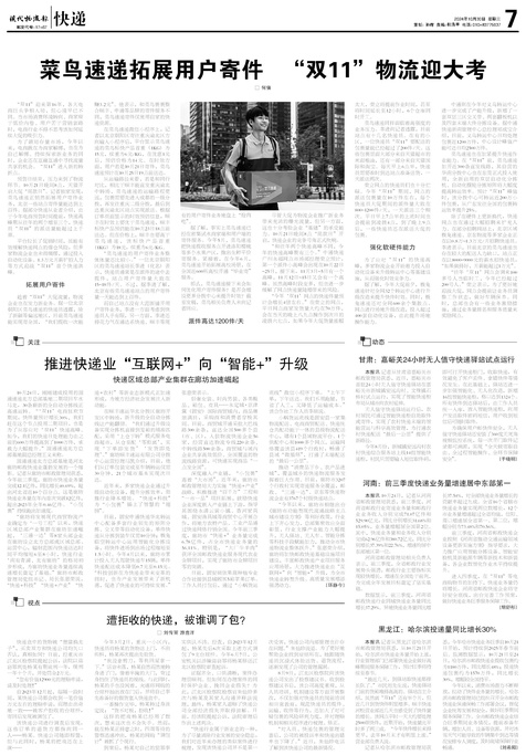 ■ 菜鸟速递拓展用户寄件 “双11”物流迎大考