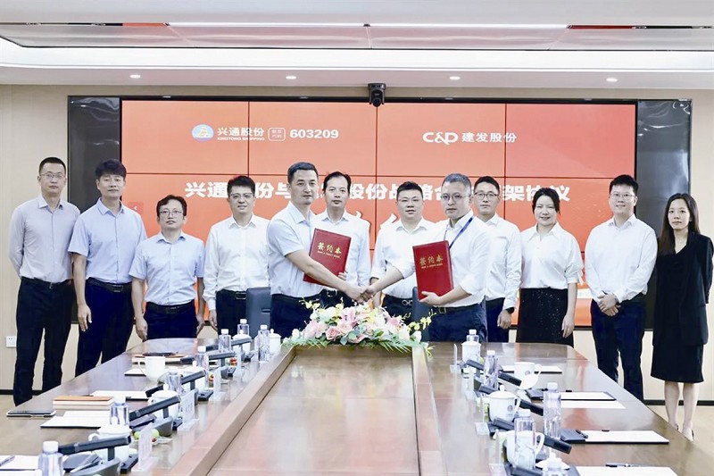 本报讯近日,建发股份和兴通股份正式签署战略合作框架协议,在建发股份总经理程东方、兴通股份总经理陈其龙的共同见证下,双方建立长期战略合作关系。