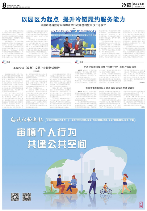 本报讯11月8日,广西现代物流集团以“携手桂物·圆梦农博”为主题亮相2024广西农博会,全方位展示其冷链物流、...