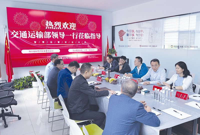 本报讯近日,交通运输部二级巡视员耿晋军一行在江苏省交通运输厅二级巡视员陆元良、江苏省交通运输厅副厅长顾敏、南京市综合执法局局长刘向东、南京市栖霞区交通运输局局长葛兵等人的陪同下视察智运安全科技(江苏)有限公司(以下简称:智运安全科技)。耿晋军首先询问了该公司的安全平台运行情况,在逐一了解系统程序后连连点头,表示赞赏。