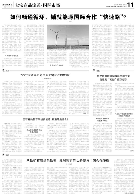 ■ 从铁矿石到绿色铁素 澳洲铁矿巨头希望与中国合作脱碳