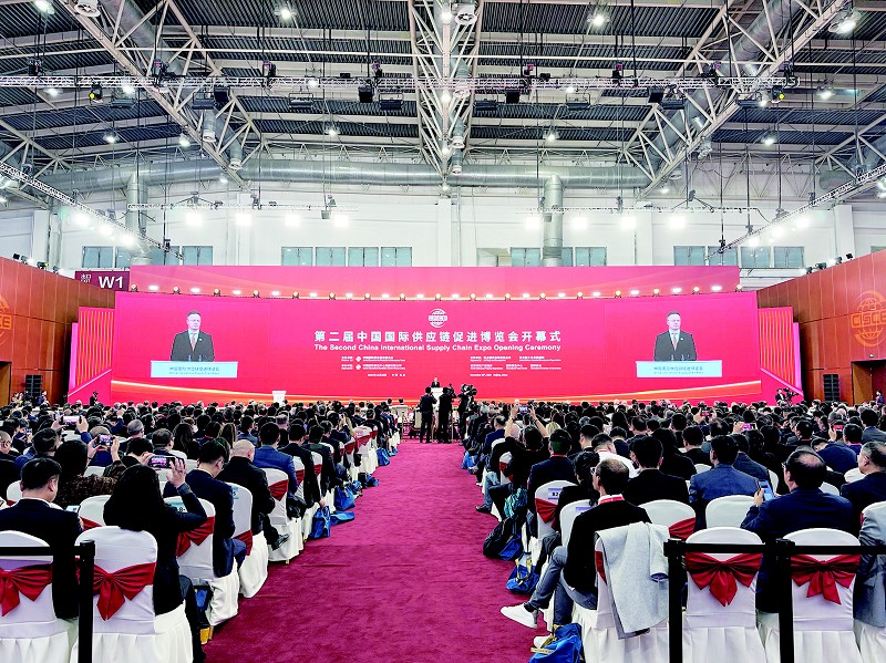 本报讯(记者贾奥胜摄影报道)11月26日上午,第二届中国国际供应链促进博览会(以下简称:链博会)开幕式在北京隆重举行。本届链博会以“链接世界、共创未来”为主题,旨在搭建一个国际化平台,促进各方加强沟通、深化合作、共谋发展。