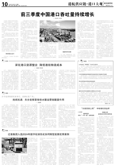 □ 庄灵辉 卢志坤 全国港口货物吞吐量仍在增长。 近期多方数据显示,今年前三季度,全国完成港口货物...