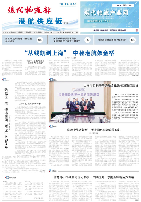 本报讯 11月21日,山东港口集团与华为技术有限公司在青岛签署全面深化合作框架协议。 根据协议,双方将...