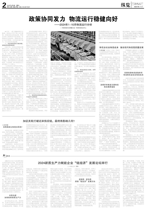□中国物流与采购联合会 中国物流信息中心 10月份,一揽子增量政策加力推进,物流运行回升势头有所增强。...