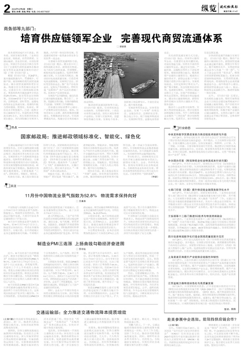 ■ 11月份中国物流业景气指数为52.8% 物流需求保持向好