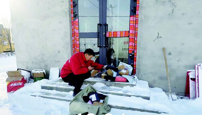 当下,伊犁州再次迎来雪季。有时,快递车到达某些村口才发现封路,也只能靠人力搬运了。