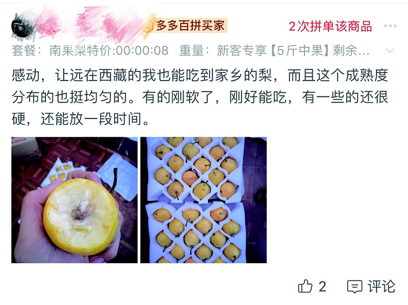 东北商家将一箱梨寄到了拉萨,被耿浩称为一种“朴素正义”。除了拼多多,还没有哪个平台能满足他想念家乡水果的这份执拗。