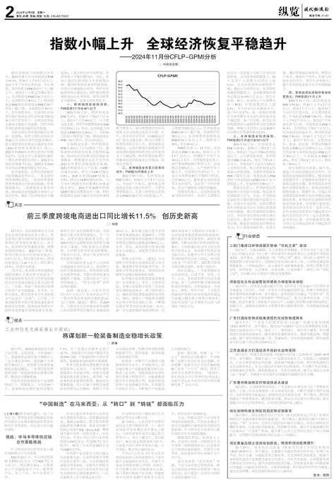 □ 科技信息部 据中国物流与采购联合会发布,2024年11月份全球制造业PMI为49.3%,较10月上升0.5个百分点...