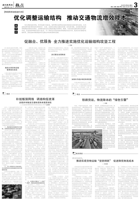 □王晶 深入推进运输结构调整,是构建现代综合交通运输体系建设,支撑交通物流降本提质增效的重要内容。...