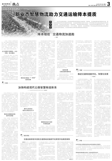 □ 韩鑫 为进一步提升交通物流质效,更好支撑有效降低全社会物流成本,近期,交通运输部联合有关部门印发...